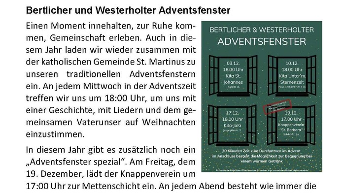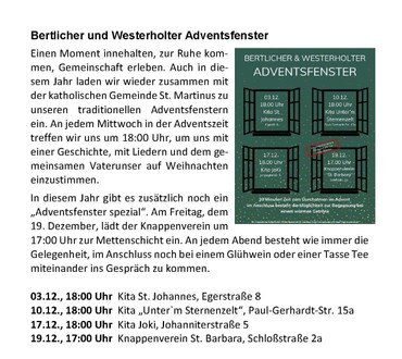 Bertlicher-Westerholter Adventsfenster Kita. St. Johannes, Egerstraße 8