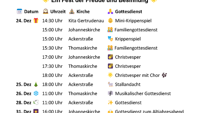 Gottesdienste Weihnachten