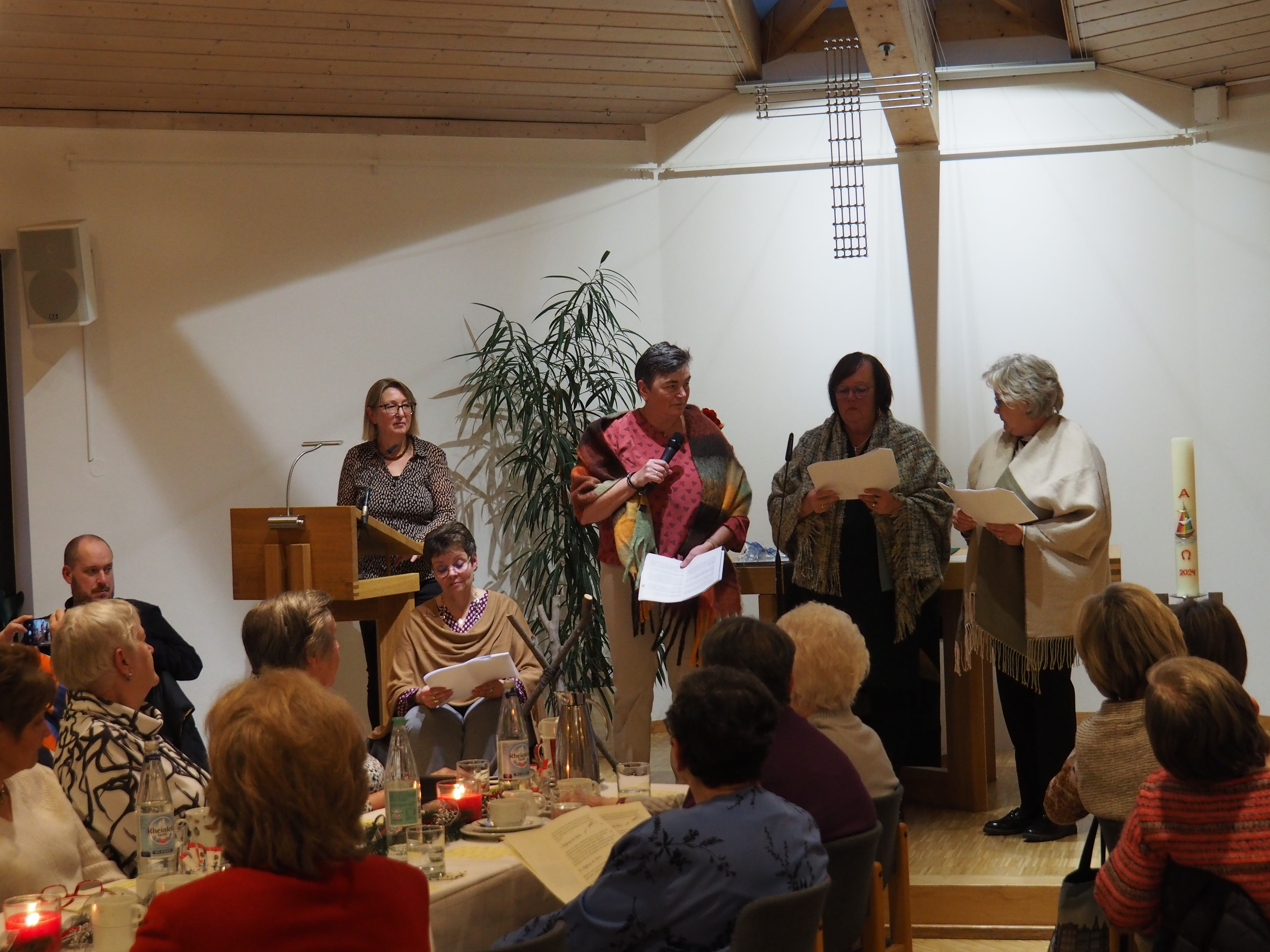Unser Jahresfest hatte diesmal zum Thema: „Süßer die Lieder nie klingen“. Die zahlreich erschienenen Mitglieder, Gäste und Jubilarinnen wurden vom Leitungsteam mit vier Dialogszenen überrascht. In denen waren Johannes Tauler („Es kommt ein Schiff geladen“), Joseph Mohr („Stille Nacht“), Martin Luther („Vom Himmel hoch“) und Paul Gerhardt („Ich steh‘ an deiner Krippen hier“) durch die Zeit gereist und statteten uns einen Besuch ab, um uns die Geschichte ihrer Lieder zu erzählen. Getreu dem Motto: Das Einzige, was besser ist als zu singen, ist mehr zu singen! – verbrachten wir einen anregenden, singenden und klingenden Nachmittag.