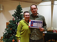 Eine weitere Spende in bar über 300,- € ging an die Aktion „wünschdirwas e.V.“, die Hermann Diener als ehrenamtlicher Helfer gerne entgegennahm. Wünschdirwas arbeitet bundesweit mit Ärzten und Therapeuten von über 100 Krankenhäusern, Kinderkliniken und Hospizen zusammen. Seit März 1989 erfüllen die Mitarbeiter mit ehrenamtlichen Helfern bundesweit Herzenswünsche chronisch und schwer erkrankter Kinder und Jugendlicher. So konnten bereits über 10.000 Herzenswünsche erfüllt werden. Weitere Informationen unter: wuenschdirwas.de.