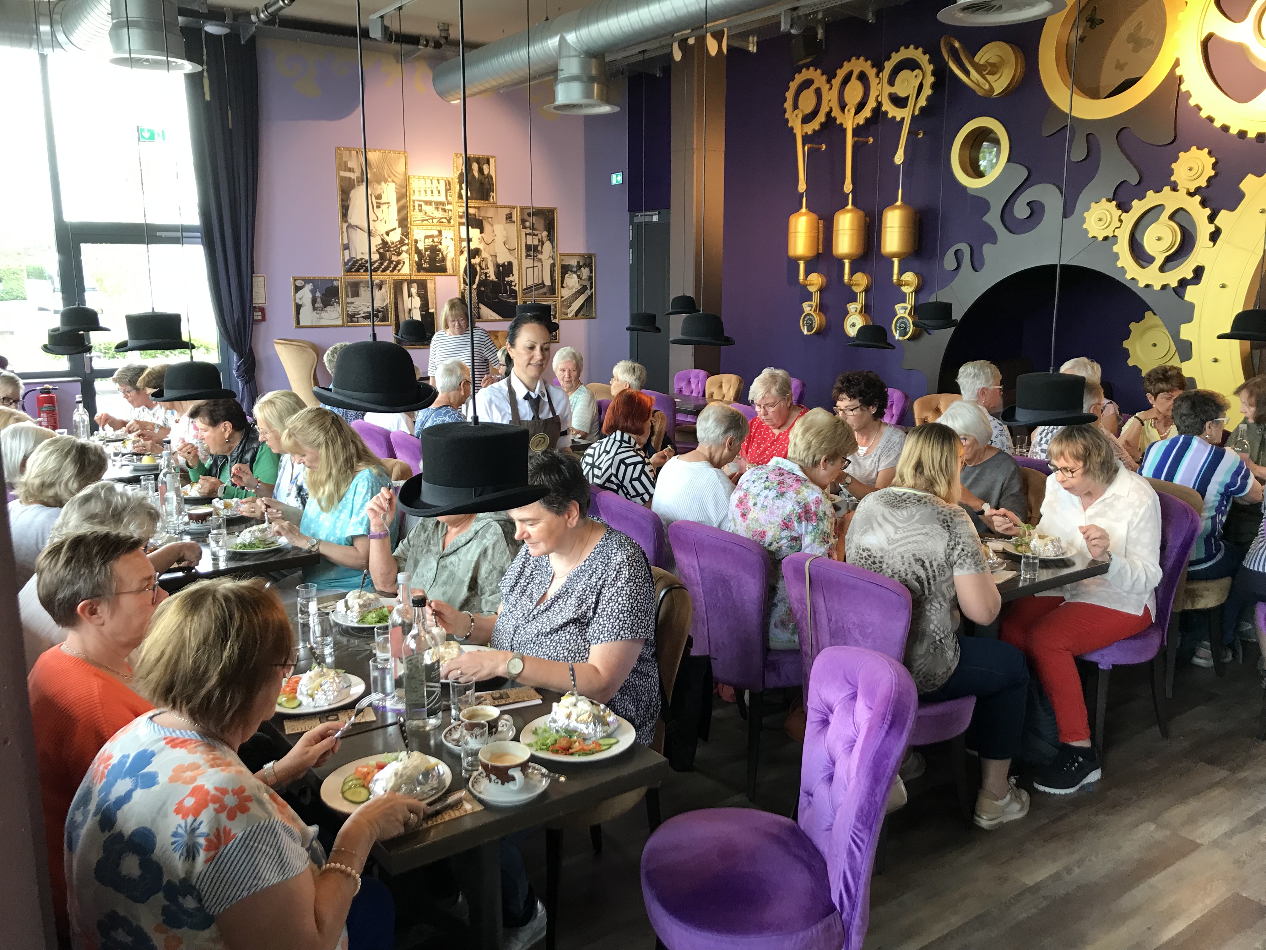 Bei Garten Picker in Borken startete der sonnige Tag mit einer informativen und launigen Führung durch die wunderschöne Gartenanlage, die stilvoll ergänzt wurde durch romantische Sitzplätze mit traumhaften Tischdekorationen. Weiter ging es über die Grenze nach Lievelde zur Käserei Weenink. Gestärkt mit einem deftigen Mittagessen drehte sich hier alles um die Herstellung leckerer Gouda-Käse, natürlich mit Verkostung, Rundgang durch die Kuhställe und Käselager sowie Einkauf im Hofladen. So manches Stück Käse erreichte abends Herten …