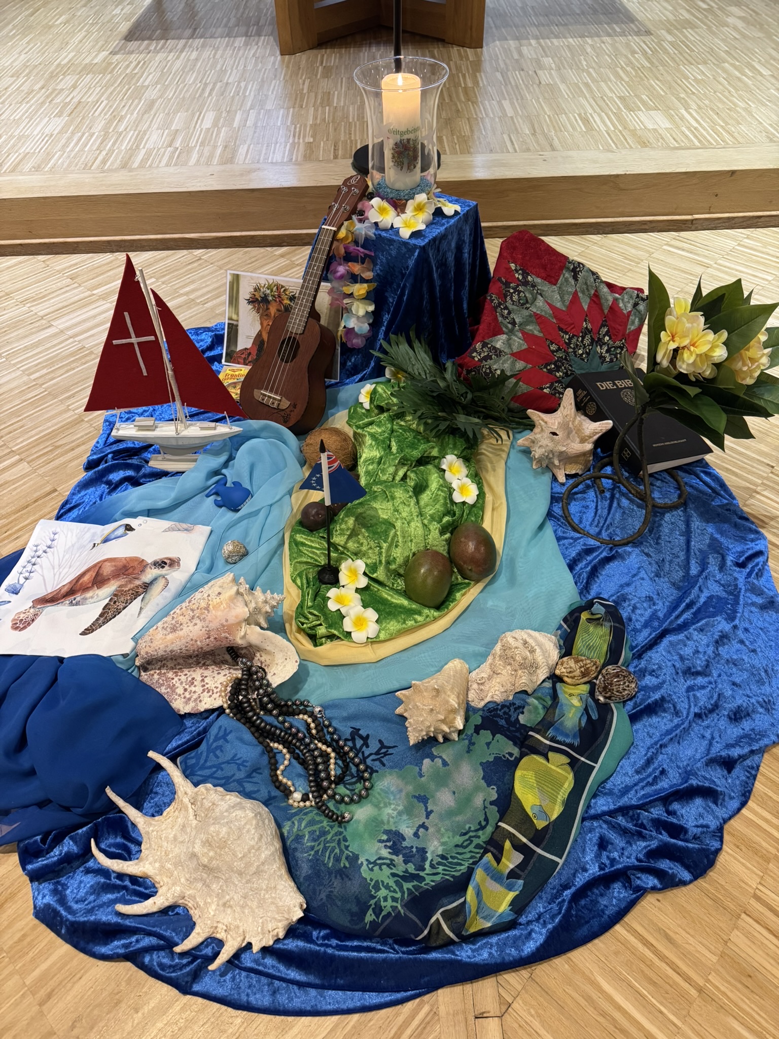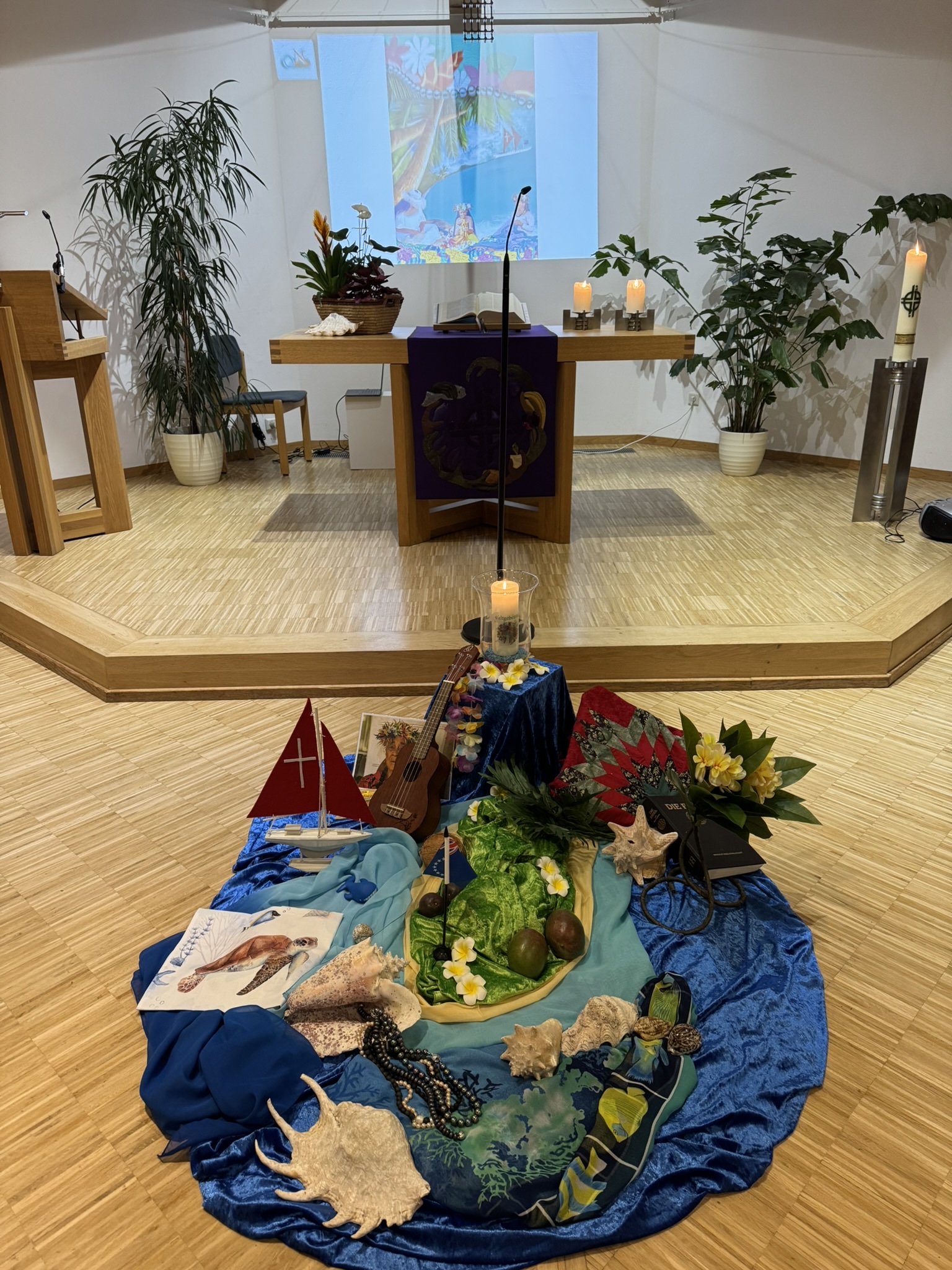 Kia orana! Hoffnung, Vertrauen und Zuversicht – diese positive Sichtweise der Christinnen der pazifischen Cookinseln haben sie mit uns geteilt. In ihrer Ordnung zum diesjährigen Weltgebetstag, der in über 150 Ländern der Erde gefeiert wurde. Auch bei uns in der Ackerstraße. Vorbereitet vom ökumenischen Team erfreute sich unser Gottesdienst einmal mehr großer Beliebtheit und war „… wunderbar geschaffen!“. Unsere Musik- und Rhythmusgruppe unter Leitung von Angela Buschmann-Rorowski riss bei den beschwingten Liedern der Ordnung (beinahe) alle von den Stühlen. Ein großes „Meitaki!“ („Danke!“) an alle, die so großzügig die Kollekte unterstützt haben. Damit können auch weiterhin über 100 Projekte weltweit unterstützt werden. Und ein großes „Meitaki!“ (Danke) an das Vorbereitungsteam der Ev. Frauenhilfe Langenbochum und der kfd St. Maria Heimsuchung für das Mitdenken und Mitgestalten sowie unser fleißiges Küchenteam.
